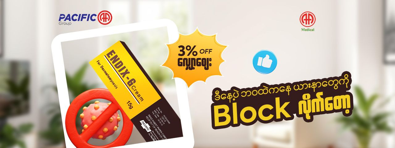 🥳 ENDIX-G ရဲ့ သင်္ကြန် Promotion ကို စောင့်မျှော်နေကြတယ်မလား ⁉️ အားလုံးမျှော်နေကြတဲ့ Promotion အစီအစဉ်လေးကတော့… 🎁 ENDIX-G Facebook Page (or) Pacific AA Online Shop Website ကနေ ENDIX-G တစ်ဗူးဝယ်ယူတာနဲ့ 3% လျှော့ဈေး ရရှိမှာပဲဖြစ်ပါတယ်။ 🗓️ Promotion Time - 6.4.2026 to 20.4.2026 (၁၄) ရက်တိုင်တိုင်ကျင်းပပေးသွားမှာဖြစ်လို့ အမြန်ဆုံး မှာယူဖို့မမေ့ပါနဲ့နော်။ ဒီနှစ်သစ်ကနေစပြီး ယားနာတွေကို ENDIX-G နဲ့အပြီးတိုင် Block လိုက်ပါ။