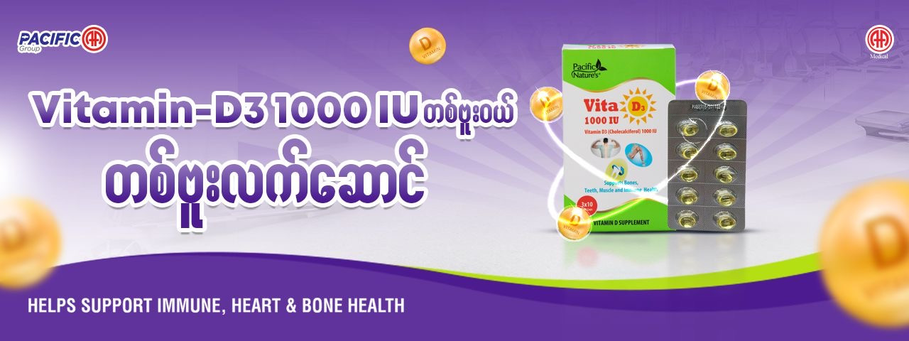 အသေးစိတ်ကြည့်ရှုရန်Vitamin D3 1000 IU ကို တစ်ဗူးဝယ် တစ်ဗူးလက်ဆောင် Promotion နဲ့ ဝယ်ယူနိုင်ပြီနော်
