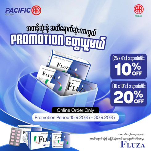 အသေးစိတ်ကြည့်ရှုရန်𝐅𝐥𝐮𝐳𝐚 ၄ လုံးပါ ၁ ဘူးဝယ်ရင် 10%OFF၊ Fluza ၁၀ လုံးပါ ၁ ဘူးဝယ်ရင် 20%OFF