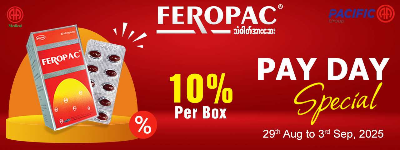 အသေးစိတ်ကြည့်ရှုရန်ပက်ကလေးတို့အတွက် Feropac Pay Day Promotion 10% Discount